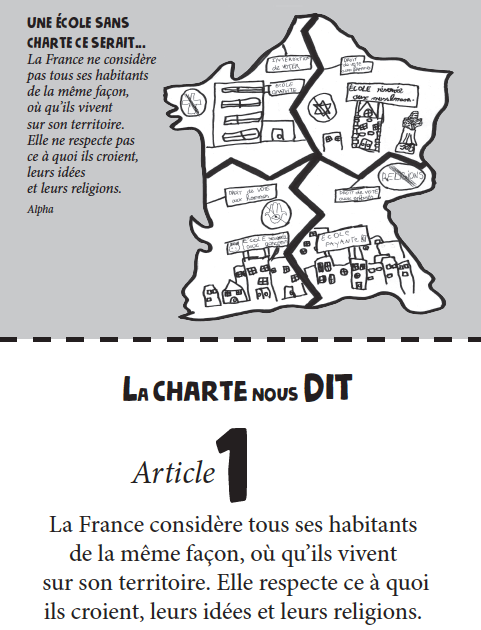 1 - La France considère tous ses habitants de la même façon, où qu’ils vivent sur son territoire. Elle respecte ce à quoi ils croient, leurs idées et leurs religions.