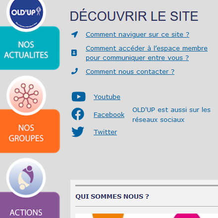 Le site internet de OLD'UP est interactif. Nous l'alimentons régulièrement avec des informations sur les activités de l'association mais c'est à vous de le faire vivre !