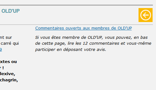 Les carrés ouverts aux commentaires pour les membres sont signalés en haut de page. Pour écrire un commentaire, cliquer sur la phrase "Commentaires ouverts aux membres de OLD'UP" à droite de l'écran. Vous pouvez aussi dérouler le texte jusqu'en bas de cette page.