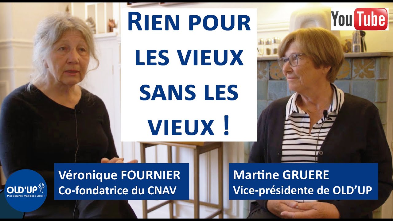 Rencontre avec Véronique Fournier, co-fondatrice du Conseil National autoproclamé de la Vieillesse. Elle dialogue avec Martine Gruère, vice-présidente de OLD’UP